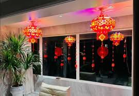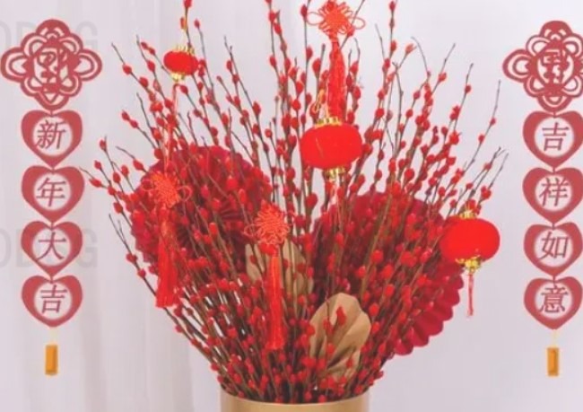 氛围装饰 Decoración de ambientes窗花、对联、大红灯笼(重红色视觉)年宵花、盆景、金桔树(重植物生机)