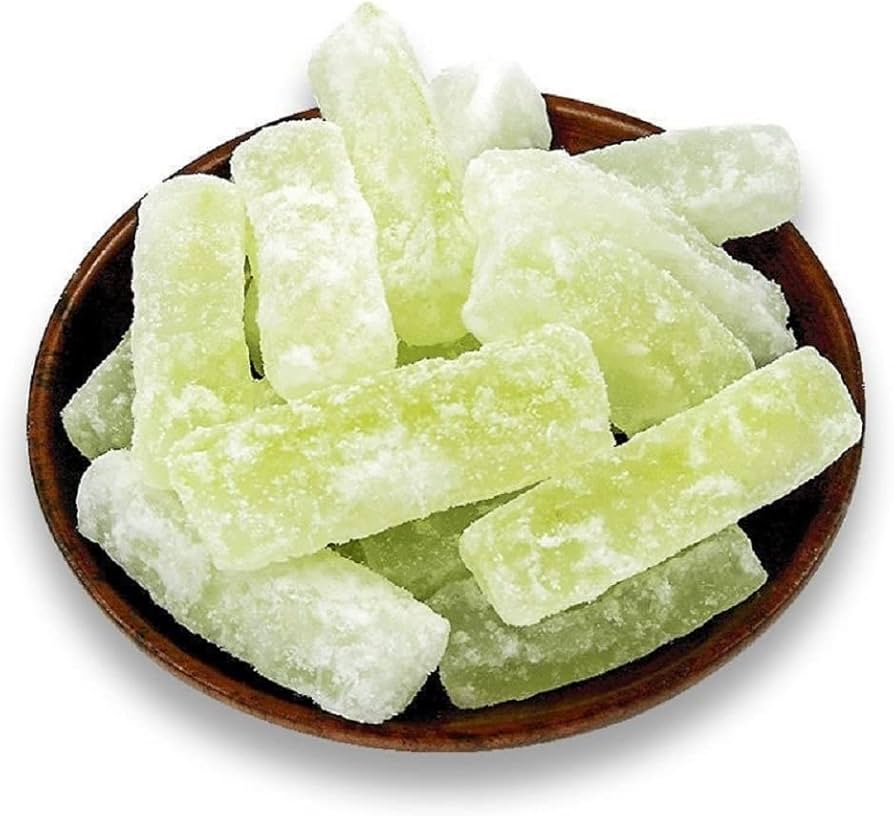 Melón de invierno confitado ( Representa un “buen comienzo y un buen final” para el año. Su color blanco y su costra de azúcar simbolizan la pureza y la dulzura desde el principio.)