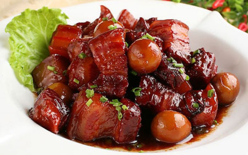 • Hong Shao Rou (Cerdo estofado rojo – 红烧肉 ): “Caramelo de soja que le da un brillo rojizo.”